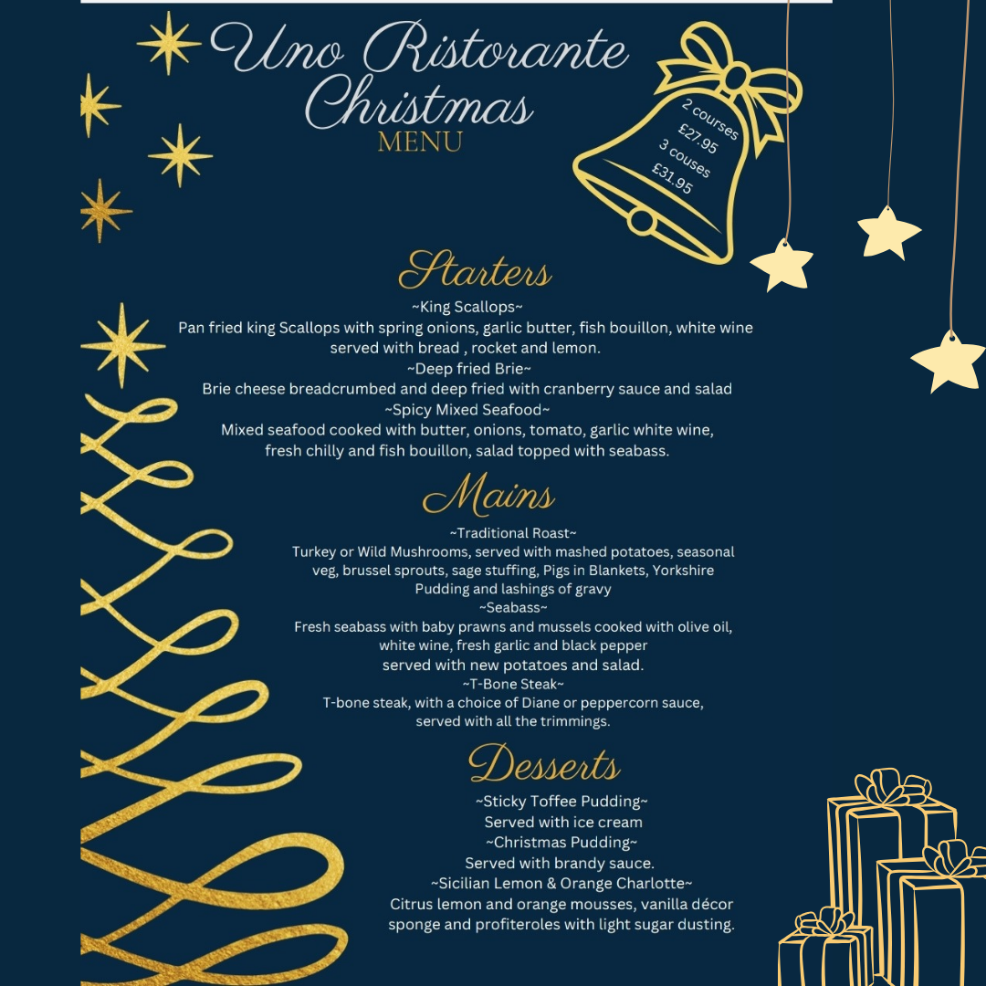 The Uno Ristorante Yarm Menu features a delightful variety of antipasti, pasta, seafood, and hearty mains, showcasing traditional flavors with a modern twist. Highlights include the Tagliatelle al Tartufo, a luxurious truffle-infused pasta, and the Pollo alla Parmigiana, a crowd favorite with tender chicken topped with rich marinara and melted cheese. For those seeking lighter options, the Insalata di Mare offers a refreshing seafood salad, perfectly paired with a glass of crisp white wine from their well-curated selection.
